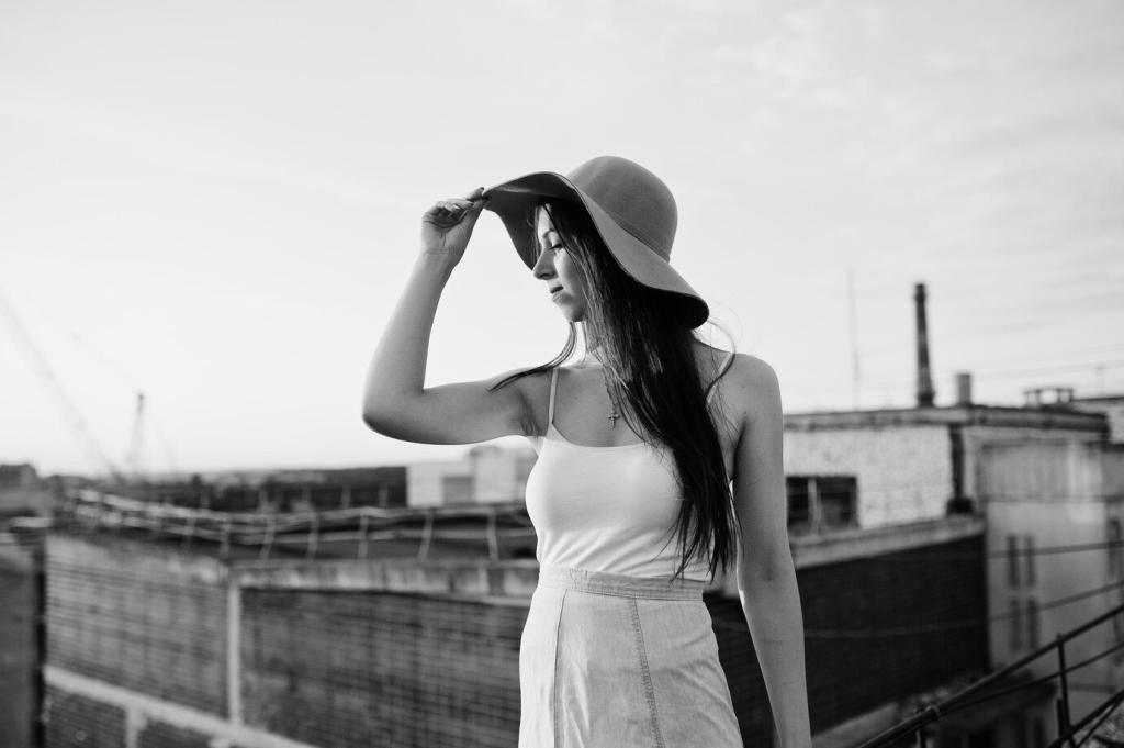 Frage freundlich, erkläre dein Bildkonzept, nutze Fassadenraster als Bühne. Symmetrie führt den Blick direkt zum Gesicht. Teile, wie du Vertrauen aufbaust und trotzdem die Strenge des Hintergrunds bewahrst.